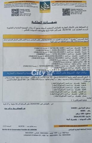Salam Je vous propose un terrain à vendre à benslimane à lotissement hajiba benslimane de 100 mètres carrés pour construire une maison d un local commercial et 2 étages